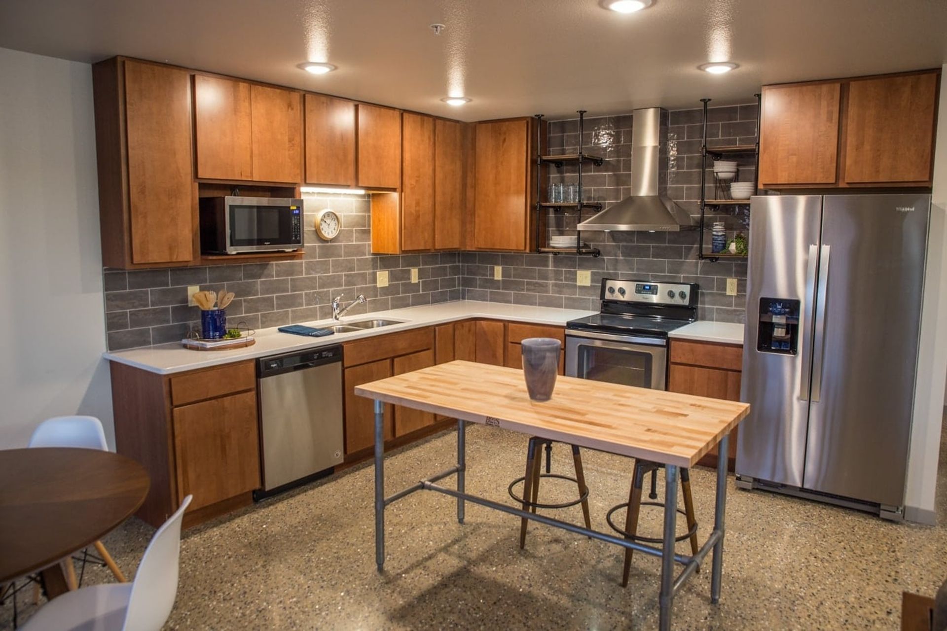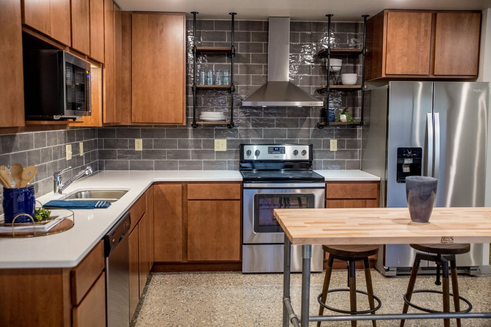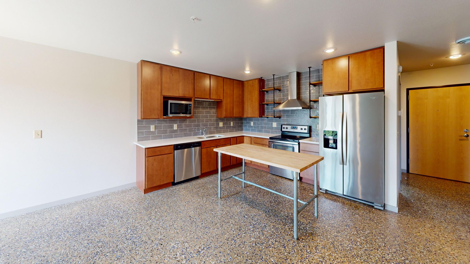Ready to find your next home? The units at Sheyenne Plaza feature sleek elements like polished concrete floors, versatile butcher block islands, elegant quartz countertops, maple cabinets, a spacious two-door stainless steel fridge, and a balcony for outdoor enjoyment. With amenities including underground parking, in-unit washer/dryer, and a fitness room, these apartments embody forward-looking design.